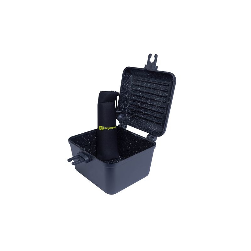 Le set casserole + poêle Connect Granite Edition est équipé de poignées “soft touch” démontables, et de charnières détachables qui transforment votre casserole en deux ustensiles différents : une casserole à bords profonds, et une poêle à fond strié pour viandes, oeufs et autres. La poêle peut servir de couvercle à la casserole, ou peut être détachée pour devenir une poêle à part entière, permettant ainsi de préparer deux plats en même temps. Cette poêle est aussi interchangeable avec le toaster RidgeMonkey Connect Granite Edition. Grâce à notre nouveau revêtement granité, nos poêles et nos casseroles sont plus solides, plus durables, et leurs propriétés anti-adhésives s’en trouvent fortement améliorées. Les ustensiles de cuisine entrent dans une nouvelle ère… Disponible en tailles standard et XL Caractéristiques : • Revêtement granité aux propriétés anti-adhésives renforcées • 1 x poêle à fond strié • 1 x casserole à bords profonds • 1 x poignées amovibles “cool touch” à fermeture magnétique sous housse • Charnières détachables • Construction en aluminium léger • Elégante finition gris métallisé • Extérieur strié pour un transfert homogène de la chaleur • Compatible avec le toaster RidgeMonkey Connect Granite Edition • Modèle déposé • Peut être utilisé avec tous types de réchauds et sources de chaleur directe (ne convient pas pour une utilisation sur les plaques à induction) Dimensions : • 180mm (295mm avec les poignées) x 155mm x 100mm • 670g (set complet avec les poignées) • 235mm (350mm avec les poignées) x 205mm x 135mm ) XL • 950g (set complet avec les poignées) XL