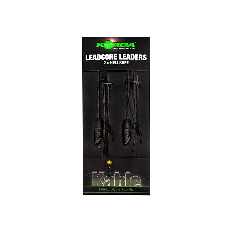 Les Kable Heli-Safe Leadcore Leaders sont disponibles en couleur Gravel Brown ou Weed/Silt, à raison de deux par paquet, et sont également fournis avec : 2 x perles No-Trace de rechange ; 2 x colliers Mini Heli-Safe ; 2 x ressorts rouges Mini Heli-Safe.