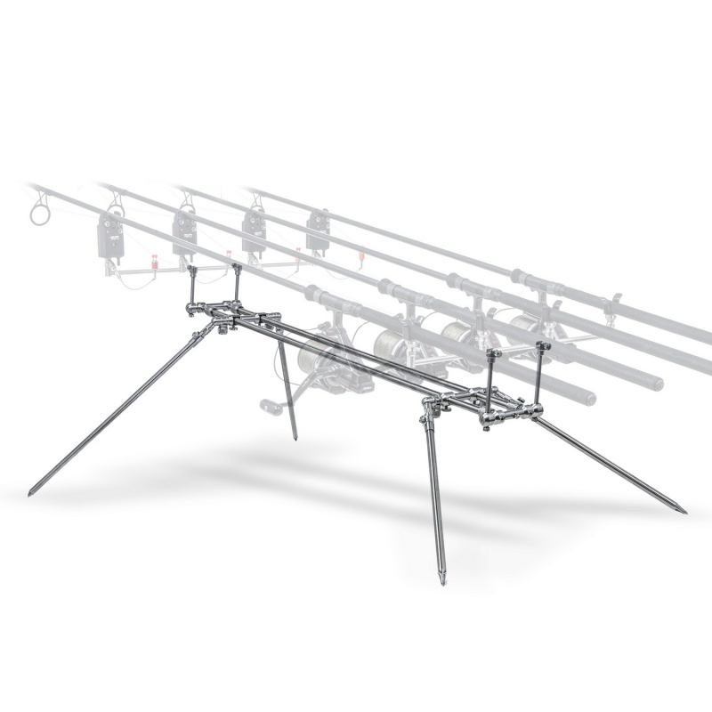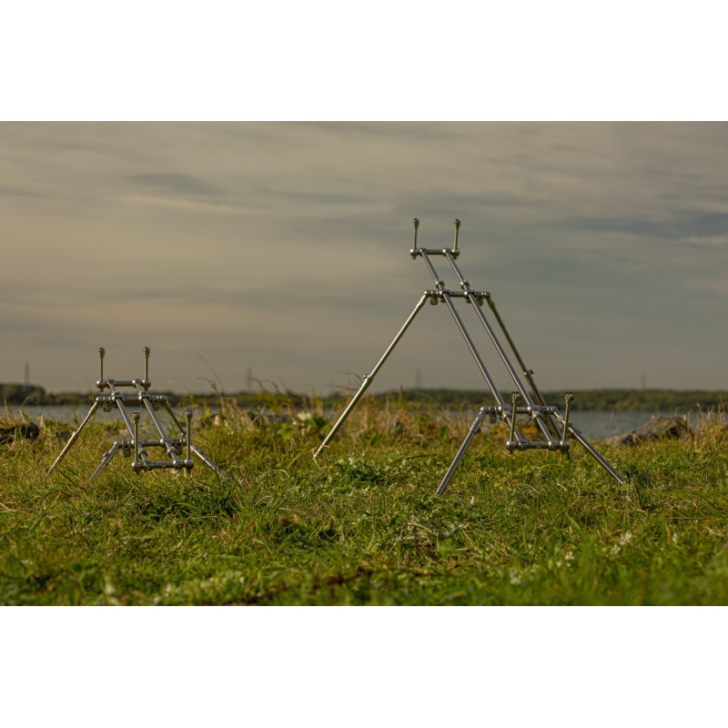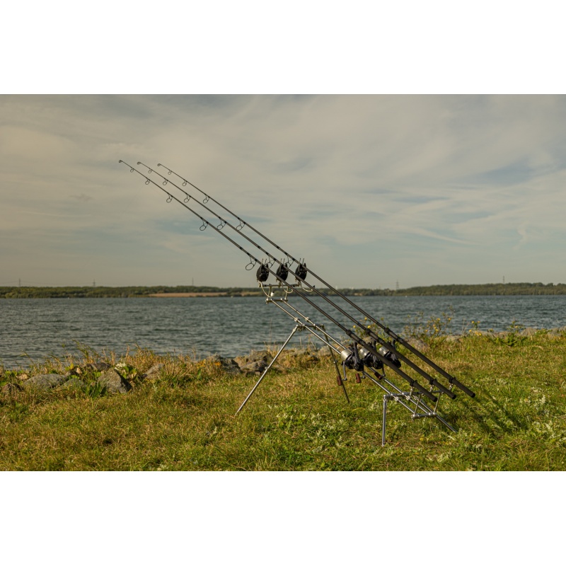 Conçu et fabriqué avec précision au Royaume-Uni, il dispose de fonctionnalités multiples et peut être adapté à n’importe quel style de pêche. Non seulement la hauteur et l’angle de chaque pied sont réglables, mais les supports de cannes peuvent également être positionnés n’importe où, le long des barres principales jumelles.